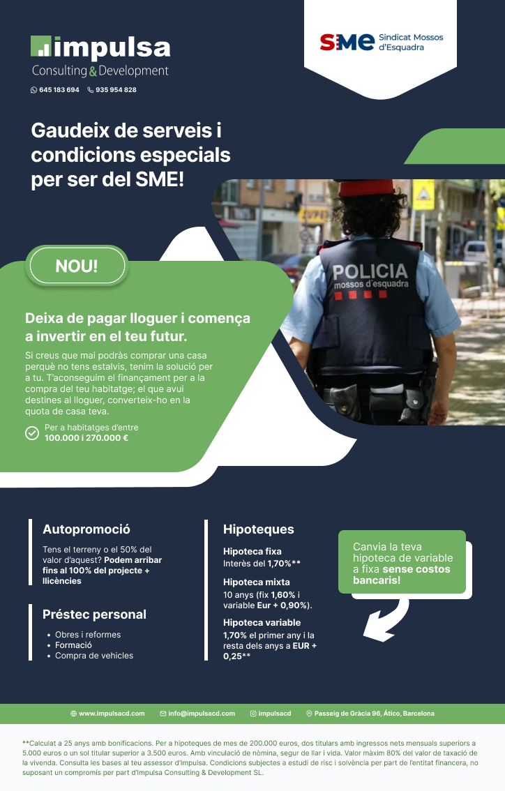 GrĆ cies al nou acord de colĀ·laboració, tots els afiliats al SME (Sindicat Mossos dāEsquadra) i els seus familiars de primer grau us podeu beneficiar dāun 14% de descompte exclusiu en la compra dāassignatures de qualsevol cicle de Formació Professional a distĆ ncia a ILERNA Online