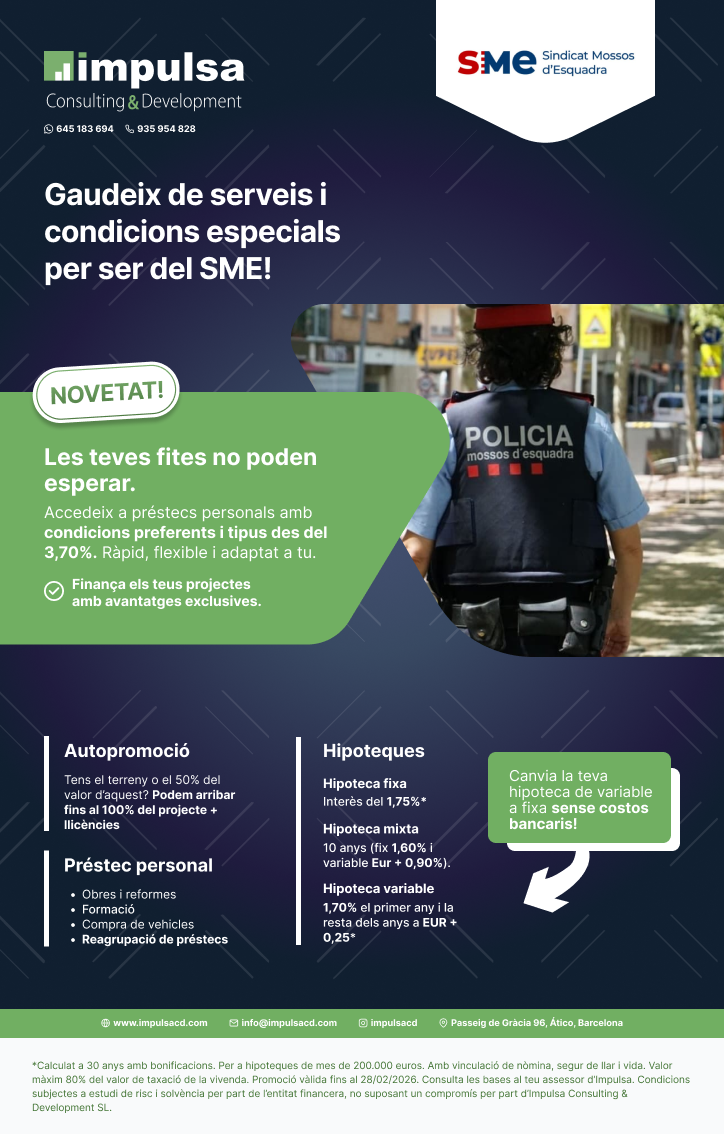 Gràcies al nou acord de col·laboració, tots els afiliats al SME (Sindicat Mossos d’Esquadra) i els seus familiars de primer grau us podeu beneficiar d’un 14% de descompte exclusiu en la compra d’assignatures de qualsevol cicle de Formació Professional a distància a ILERNA Online