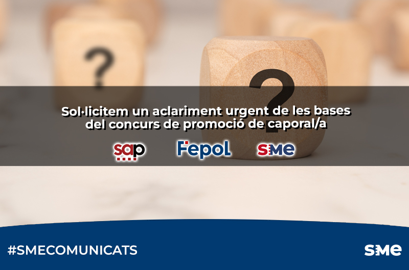 Des del SAP-SME-FEPOL hem sol·licitat un aclariment urgent a l’Àrea de Processos Selectius, ja que la discrepància entre les bases i l’acord de govern és notable i perjudica les persones funcionàries que optin per participar en més d’una agrupació. Aquest extrem pot provocar, a més, una reducció de la participació prevista.